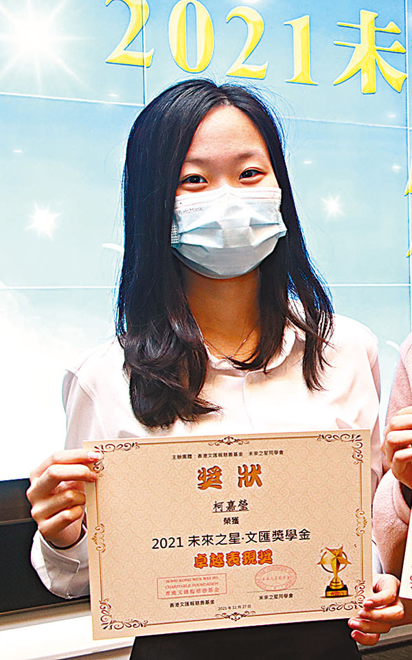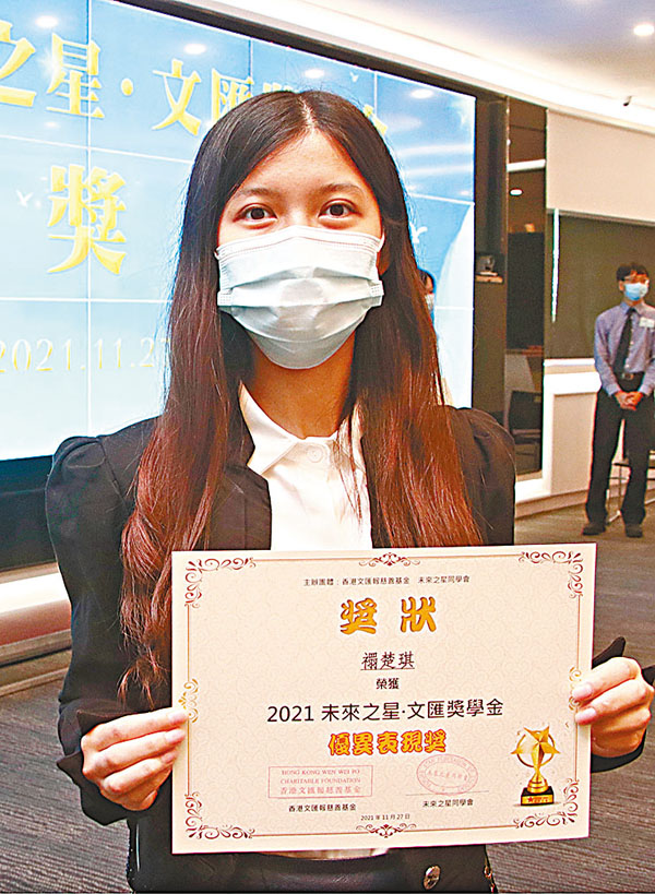 我未來想做英文老師,今次獎學金是很大的鼓勵,可助我報讀相關課程,改善英文水平,我也計劃到英國當交換生。「未來之星」有很多交流活動,但因為疫情原因,暫未有機會參與,期望疫情之後能參加。