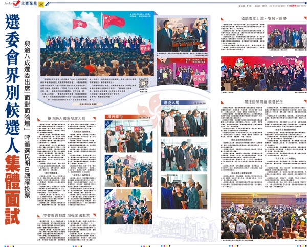 1號候選人陸頌雄:選委會界別候選人需要爭取各個界別的選委支持,而我們都一心一意比拚政綱、能力,團結一致向前看,今次選舉將幫助香港邁向「一國兩制」的新征程,把握國家發展機遇。