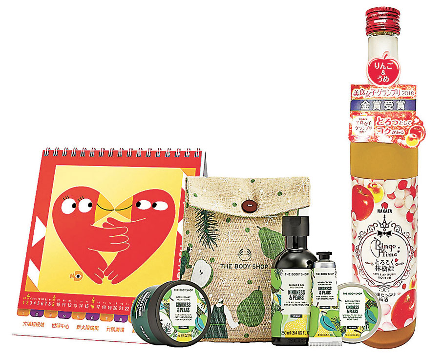 現在,元朗廣場特別為香港文匯報讀者送出日本版 NAKATA田中林檎姬蘋果和歌山產南高梅酒(500ml)、新地商場 ×人氣插畫師Nina Dzyvulska限定版2022年月曆及The Body Shop身體護理禮盒(節日限定版–繽紛香梨身體護理禮盒),如有興趣的讀者,請剪下此印花貼於信封背面,連同HK$2郵資的回郵信封,郵寄至香港仔田灣海旁道7號興偉中心3樓副刊時尚版收,封面請註明「元朗廣場聖誕送禮」,名額共10位。截止日期︰12月28日,先到先得,送完即止。