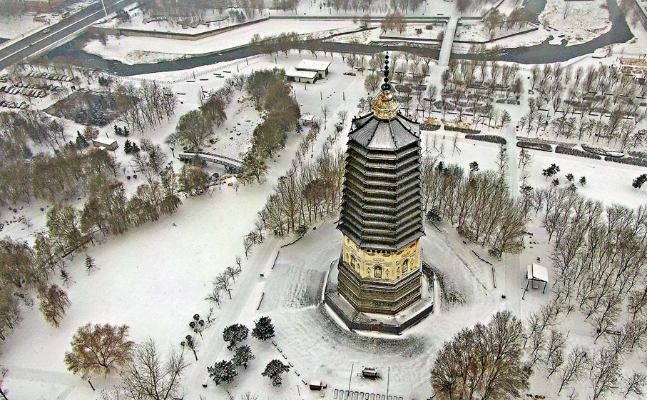 早前,在小雪節氣後,遼寧省瀋陽市出現連續降雪天氣,於是瀋陽市渾河兩岸,銀裝素裹,當中渾河岸邊瀋水灣公園內的雲颺閣鋪滿白雪,景色優美。而且,雲颺閣是一座歷史古蹟,是遼代朝廷為祭水和保佑當時瀋州而修建的。後來,雲颺閣倒塌,便成為了歷史遺蹟,重建後的雲颺閣在風光旖旎的一河兩岸,如明珠璀璨,似玉宇瓊樓,作為遼文化的標誌性建築,成為一道美麗的城市風景和悠遠的歲月紀念。