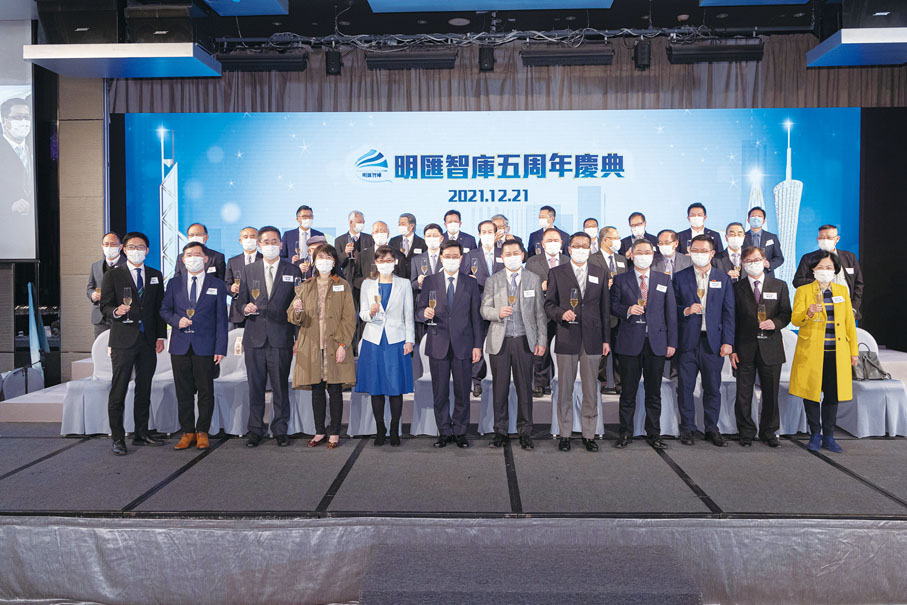 2021年12月21日冬至傍晚,香港明匯智庫在位於尖東的唯港薈,舉行成立五周年慶典活動。政務司司長李家超,中聯辦研究部副部長王珺、青年工作部副部長宋來,行政會議成員、立法會議員及匯賢智庫主席葉劉淑儀,署理民政事務局局長陳積志,政策創新及統籌辦事處總監何珮玲,勞工及福利局副局長何啟明,商務及經濟發展局副局長陳百里,創新及科技局副局長鍾偉強,政制及內地事務局副局長胡健民,香港廣東青年總會主席霍啟山等人擔任主禮嘉賓。