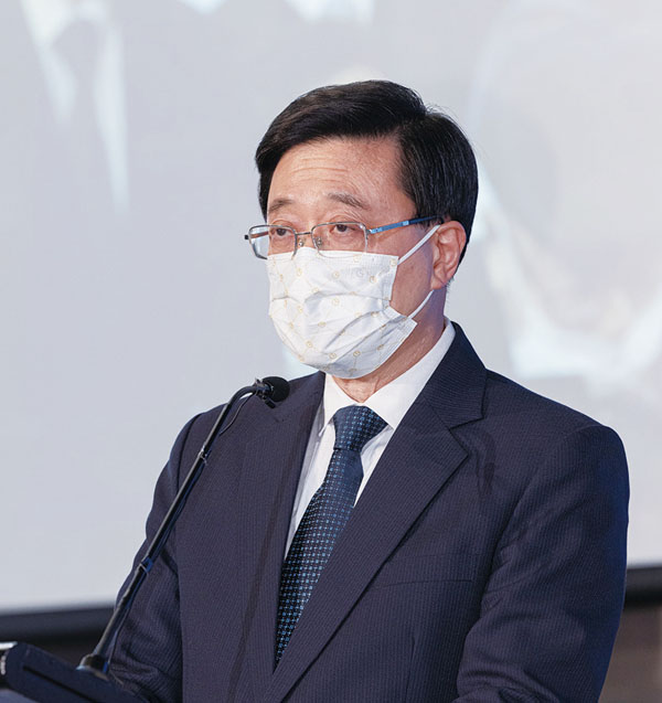 政務司司長李家超在致辭時表示,明匯智庫關注經濟、社會、民生議題,尤其關切青年發展和粵港澳大灣區建設,進行社會調查和政策研究工作,為政府提供不少真知灼見。「我感謝明匯智庫支持政府依法施政,關心香港的未來發展,向政府建言獻策。」