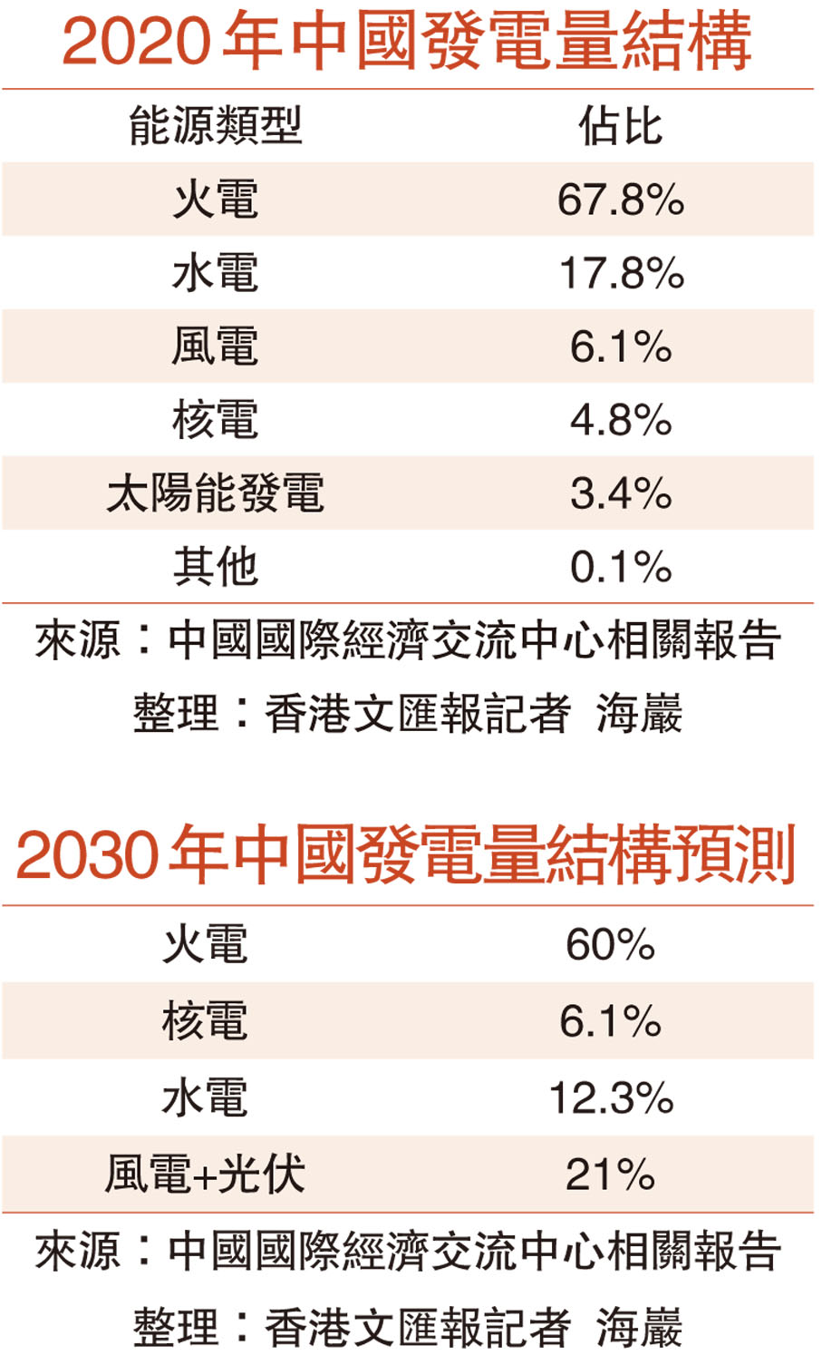 2030年中國發電量結構預測