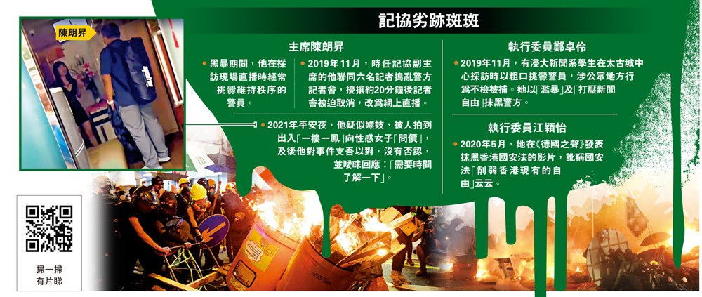 •2019年11月,時任記協副主席的他聯同六名記者搗亂警方記者會,擾攘約20分鐘後記者會被迫取消,改為網上直播。
