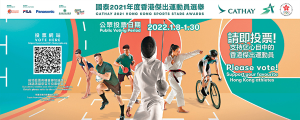 2021年香港掀起一陣運動狂熱,香港運動員在東京奧運、殘奧以及全運會的出色表現感動無數人心,而為表揚本地傑出運動員而設的「國泰2021年度香港傑出運動員選舉」亦正式拉開帷幕,由昨日起至本月底期間接受公眾投票,今屆選舉港協暨奧委會一共收到來自33個體育總會的66個提名,並由評審團、傳媒及公眾選出各個獎項得主,至於頒獎典禮則會於2月22日舉行。