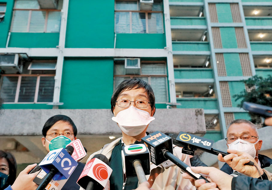 Omicron「BA.2亞型」在香港社區爆發。在檢疫酒店染疫的43歲巴基斯坦裔主婦中招後,回到社區引發1傳9確診個案,由於該群組經常在深水埗一帶活動,該區頓成高危地點。該群組昨日更添1宗同場考生及兩宗深水埗大坑東邨東滿樓垂直傳播的初步確診個案,政府專家顧問袁國勇一行昨日到現場調查,相信是樓下南亞婦一家六口染疫後,高病毒量空氣經排氣扇排出,上升至樓上導致疫情傳播,東滿樓同坐向14個單位住戶須撤離送檢。另外,昨日再有3名患者到公立醫院求診,檢測後初步呈陽性,兩宗與南亞婦群組有關。◆香港文匯報記者 文森