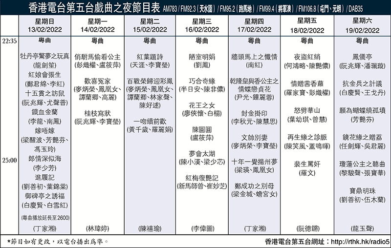 香港電台第五台戲曲之夜節目表