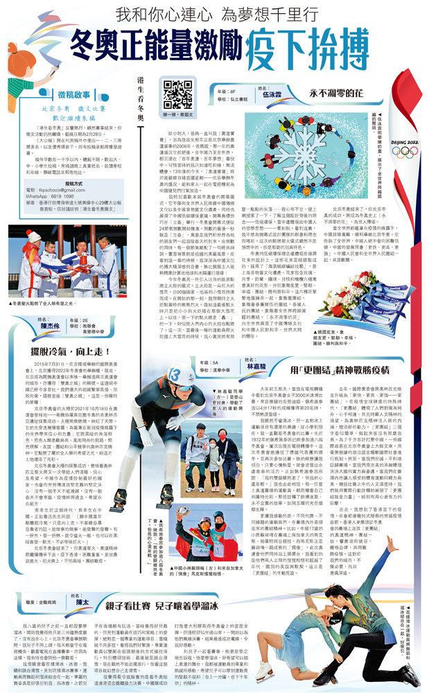 郵寄:香港仔田灣海旁道七號興偉中心29樓大公報教育組,信封請註明「港生看冬奧徵文」