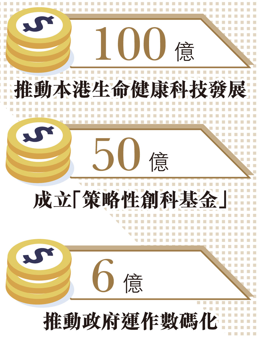 財政預算案就創科發展提出多項新措施,包括預留100億元推動本港生命健康科技發展;斥資50億元成立全新的「策略性創科基金」,豐富本港投資生態;動用6億元推動政府運作數碼化,以及將創新及科技基金對大學科技初創,以及16所國家重點實驗室和6所國家工程技術研究中心的資助額增加一倍,總涉款高達約160億元。◆香港文匯報記者 姬文風