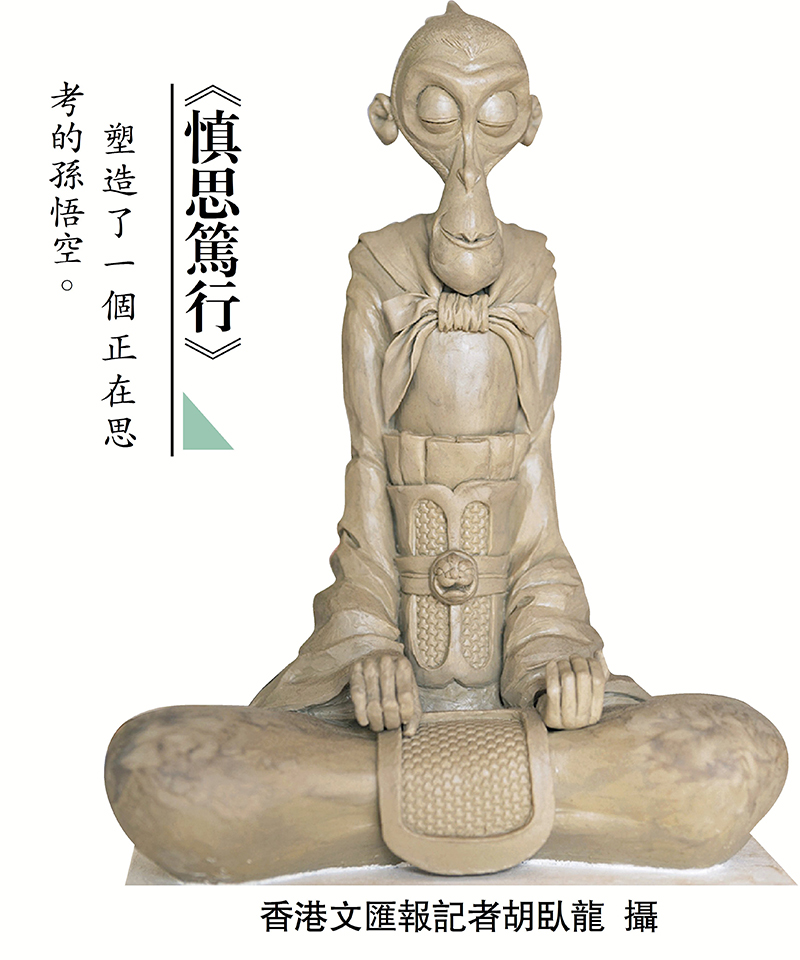在眾多作品中,林開開最喜歡的是漫塑《孔明》。「相傳諸葛亮精通周易測算,開創了『諸葛亮太極八卦陣』。我所創作的《孔明》就是根據諸葛亮的人物特點,將太極圖融入作品的頭部造型進行創意設計。」《孔明》從設計到完成,用時1個多月。