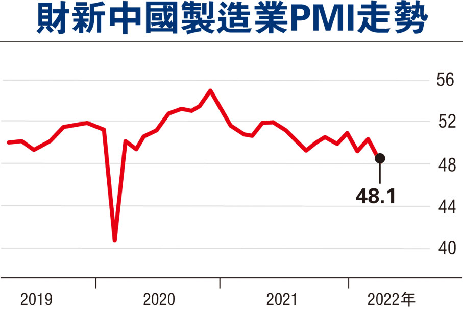 受累疫情 財新製造業PMI跌回收縮區