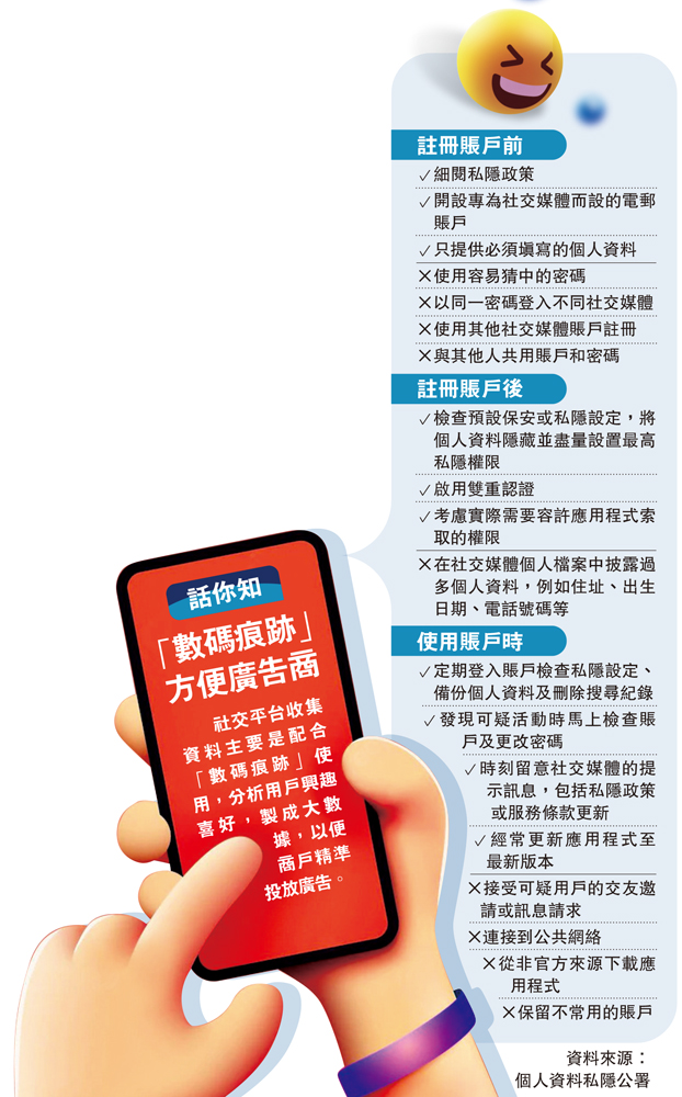 社交平台收集資料主要是配合「數碼痕跡」使用,分析用戶興趣喜好,製成大數據,以便商戶精準投放廣告。