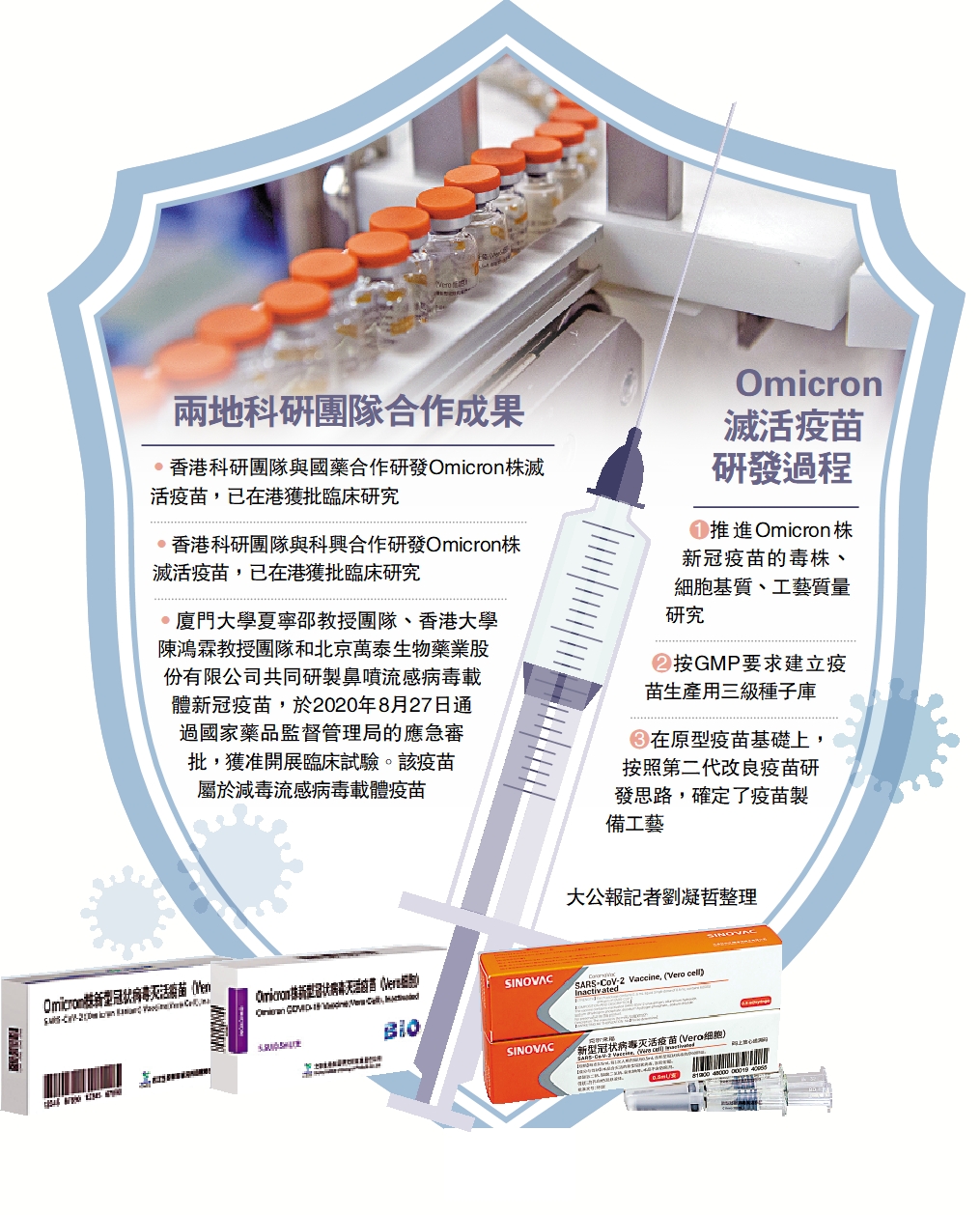 •香港科研團隊與科興合作研發Omicron株滅活疫苗,已在港獲批臨床研究