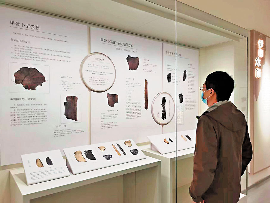 甲骨文是中華民族珍貴的文化遺產,是中國目前已知最早的成體系文字,被稱為中國漢字的起源。「片刻千載——甲骨文化展」目前正在山東博物館舉行。本次展覽甄選120餘件珍貴甲骨及青銅器、石刻等文物,重溫3,000年前的商代文明。本次展覽通過「文字發展」、「甲骨占卜」、「夢迴大商」、「甲骨文與研究」四個部分內容,系統講述甲骨文的發現與製作,展現甲骨文與現在漢字的演變關係,重溫甲骨文背後的商代文明,致敬甲骨文學者們的卓越成就。◆文、攝:香港文匯報記者 殷江宏 山東報道