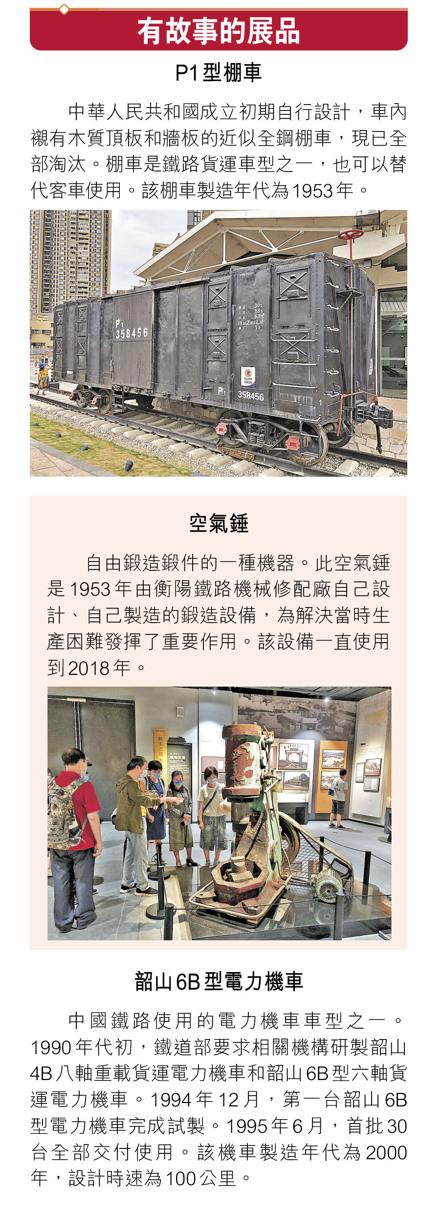 1號展館由「艱辛歷程」、「新生之路」、「開拓先行」、「高鐵時代」、「繼往開來」5個展廳組成,展現廣州鐵路百年歷史。身處其中,讓人有種時空穿越的感覺,又似翻開一幅南粵鐵路跌宕起伏、波瀾壯闊的歷史畫卷,引人對話歷史,撫往思今。進入展館,「KF-1型蒸汽機車」模型搶眼。這是20世紀30年代初國民政府粵漢鐵路株韶段專門訂製的一款車型,由國民政府鐵道部路政司參與設計,英國沃爾岡機車工廠生產,一共生產24台,存世的僅有2台。該機車被定為國家一級文物,現收藏於中國鐵道博物館。