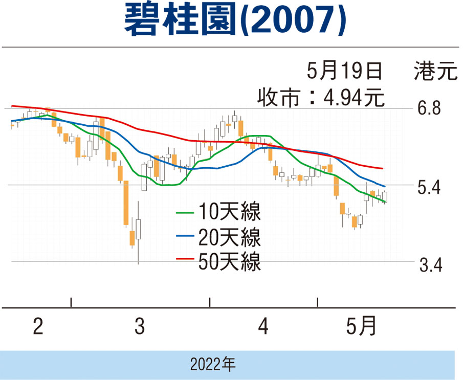 摩根大通發表研究報告指出,內房行業可能在第三季復甦,給予碧桂園「增持」評級,目標價7.6元(港元,下同)股價昨天收報4.94元,升1.65%,近日已重越10天線,上望6元,宜以跌穿4.3元則止蝕。