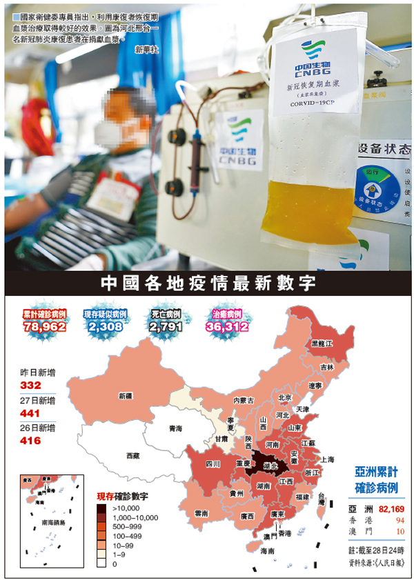衛健委:血漿治療見效 中國近半患者出院