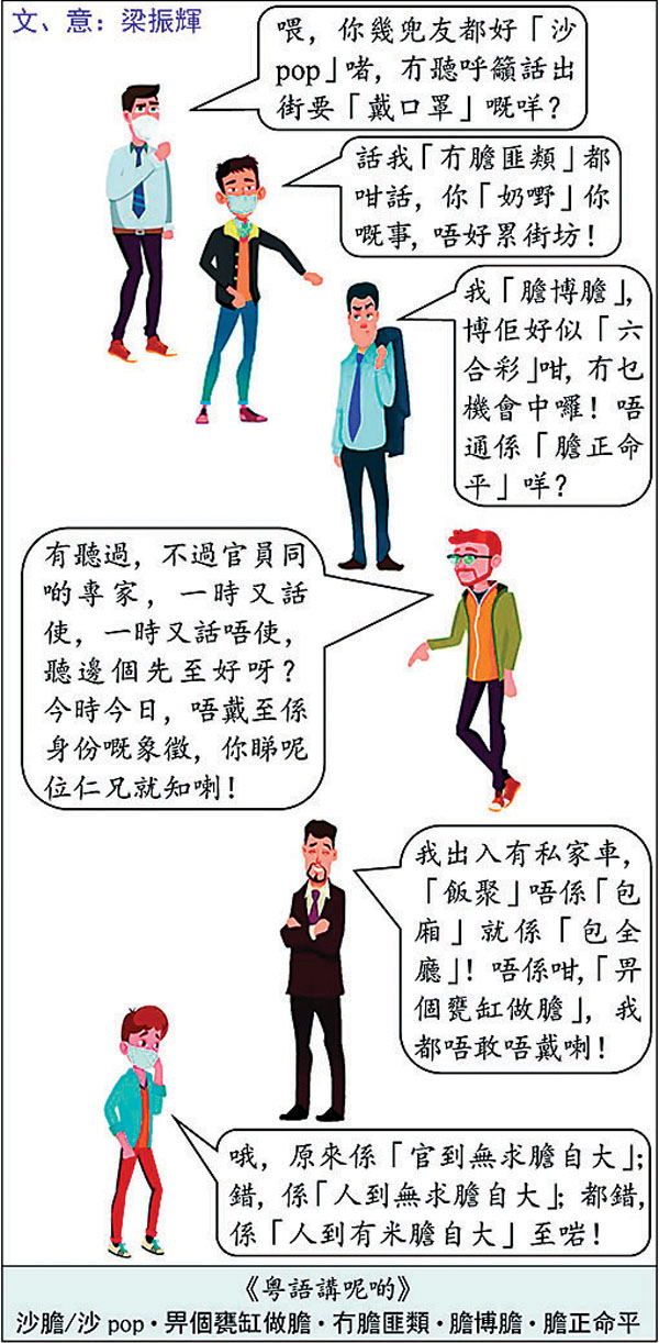 就近期「戴口罩」的行為,所謂「膽博膽」,就是指選擇不戴的人用一己的膽量去博一博所到環境不存在�荂u新冠肺炎」帶菌者的可能性。