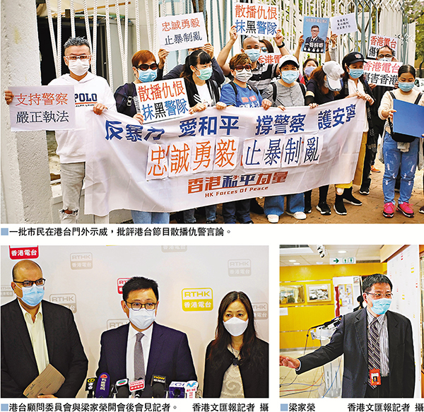 香港電台節目《頭條新聞》早前以不實傳言抹黑警察,引發市民不滿,警務處處長鄧炳強亦兩度發信向廣播處處長梁家榮投訴,惟港台以該節目為非新聞節目為由狡辯。港台顧問委員會昨日與梁家榮開會,據了解,所有顧委會成員會上均認為《頭條新聞》違反《香港電台約章》。顧委會主席陳建強在會後見傳媒時強調,港台所有節目均須嚴格遵守《港台約章》,不應亦不會有例外和豁免。顧委會要求廣播處處長要嚴謹處理投訴;根據約章定期與委員會溝通;重視和考慮委員會提出的所有意見。■香港文匯報記者 鄭治祖