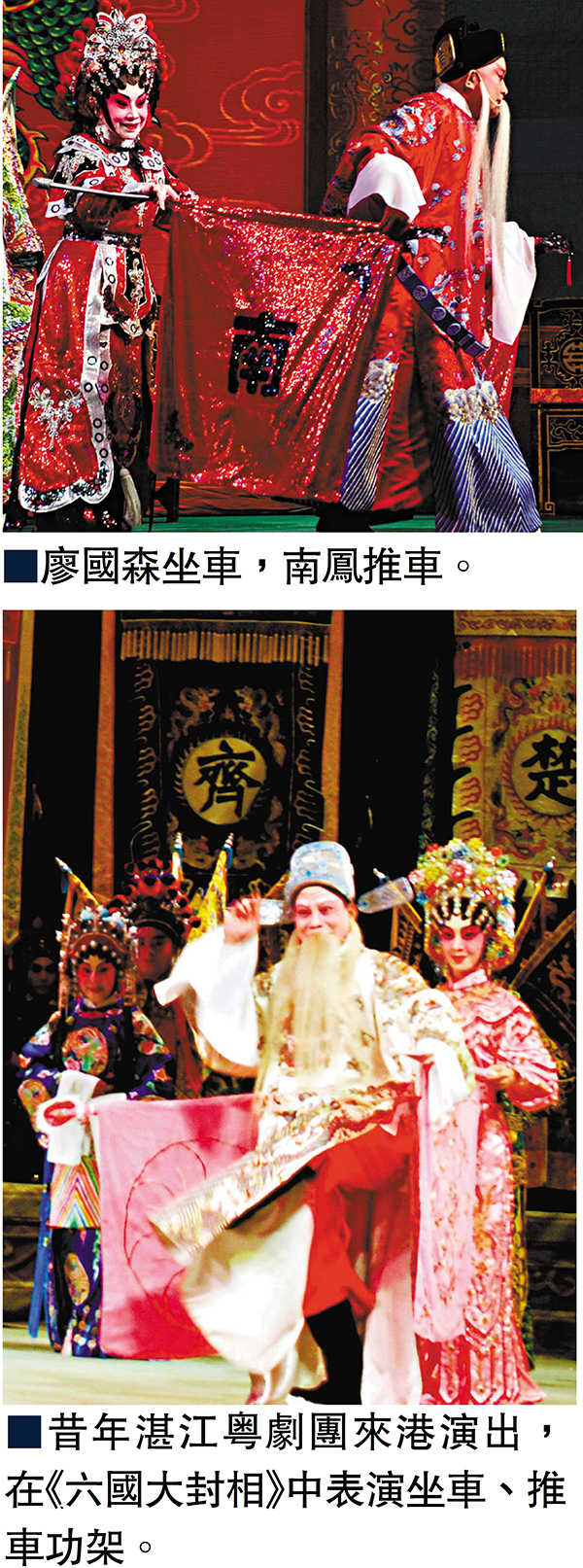不過在戲行,仍有非武生不可的演出,如在《六國大封相》中的公孫衍,必須由武生擔演,資深的演員坐車功架每每令觀眾嘆為觀止。在香港戲行,靚次伯的坐車功架是最好的,而近年常在《六國大封相》演公孫衍的非廖國森莫屬,他的演繹有靚次伯的神髓,常和各大花旦合作,在舞台上大演鬚功和腰腿功,常贏得不少掌聲。