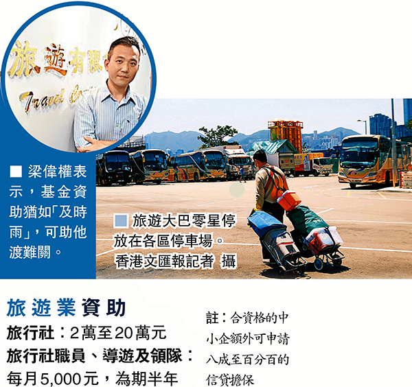 疫情肆虐全球,世界各地紛紛「封城」,旅遊業陷入停擺狀態。主力接待內地團的金威假期負責人梁偉權接受香港文匯報訪問時透露,其公司對上一次接團已是1月份的事,員工現時全部要放無薪假,但十多部旅遊巴每月仍要供款,加重公司的財政負擔,每月虧損高達數十萬元,故特區政府第二輪防疫抗疫基金的資助猶如及時雨,可救助處於水深火熱的旅遊業,他促請立法會議員做實事,盡快批出撥款。