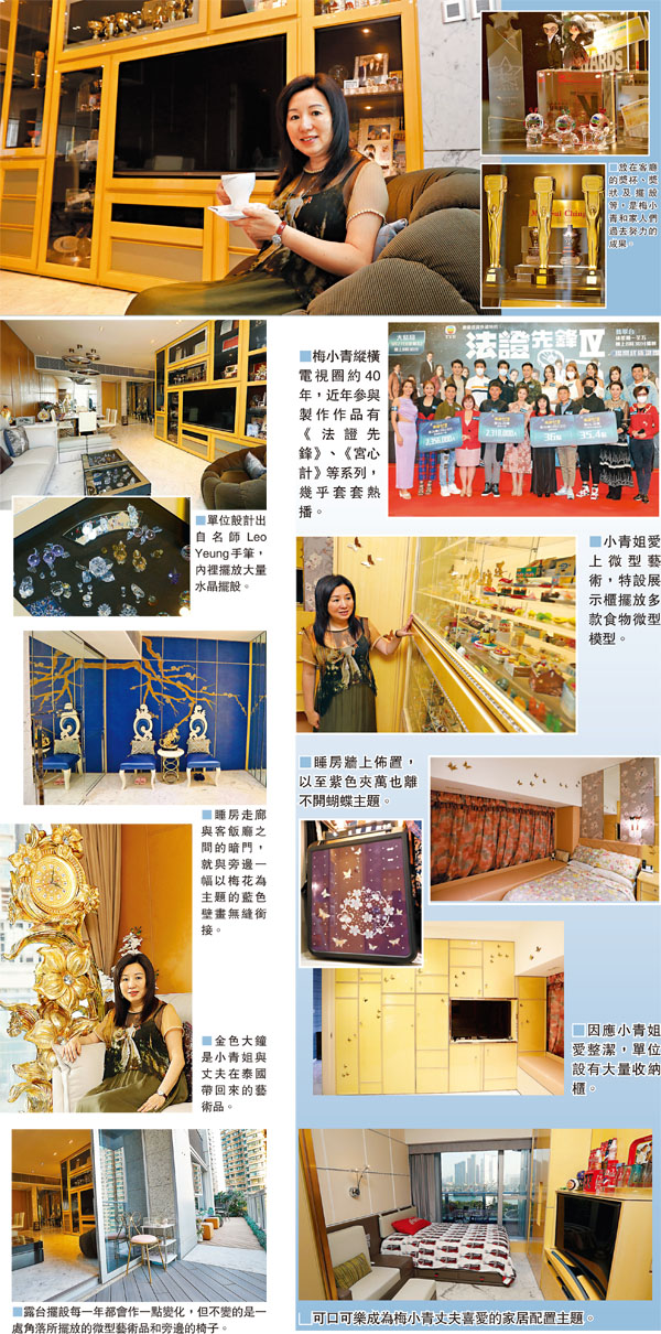 即將年中榮休的無�邦q視監製梅小青(小青姐),縱橫電視圈約40年,製作多套膾炙人口劇集,近年作品有《法證先鋒》、《宮心計》等系列,幾乎套套熱播,是怎樣的生活環境才能造就一代才女監製?今期《置業安居》走進才女之家,中西合璧的華麗佈置、琳琅滿目的微縮模型、承載她與家人成長點滴的展示櫃,在在處處都有值得細味回憶的地方,或許只有這樣的家居,才能迸發才女的靈感。■文:香港文匯報記者顏倫樂 圖:香港文匯報記者