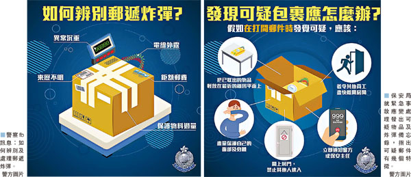 鄒昊亨強調,郵遞炸彈的危險已經時刻存在,市民和辦公室管理人員,應該留意炸彈和可疑物品的威脅,保持警覺,注意身邊的事物,採取適當措施加強保安。