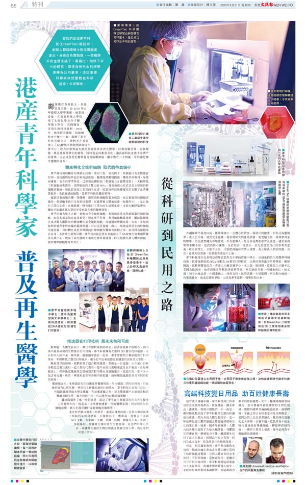 走在時代風口浪尖上的夢芊,事業正蓬勃向前。這批由鄺緯陽博士領銜的年輕科學家,不僅推出了一應產品,還發表了多篇 SCI 文獻,在中國、美國、英國、法國、德國及日本,申請了多項專利。開發最先進的再生生物技術,是他們的雄心所在,而讓最先進的生物技術惠及最廣泛的人群,則是他們的願心所向。