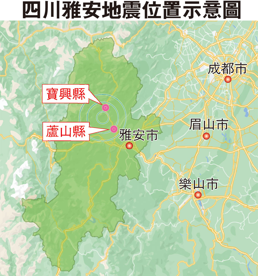 四川雅安3分鐘2次地震 最大6.1級 接報4死14傷均在寶興縣 屬2013年蘆山7.0級地震餘震