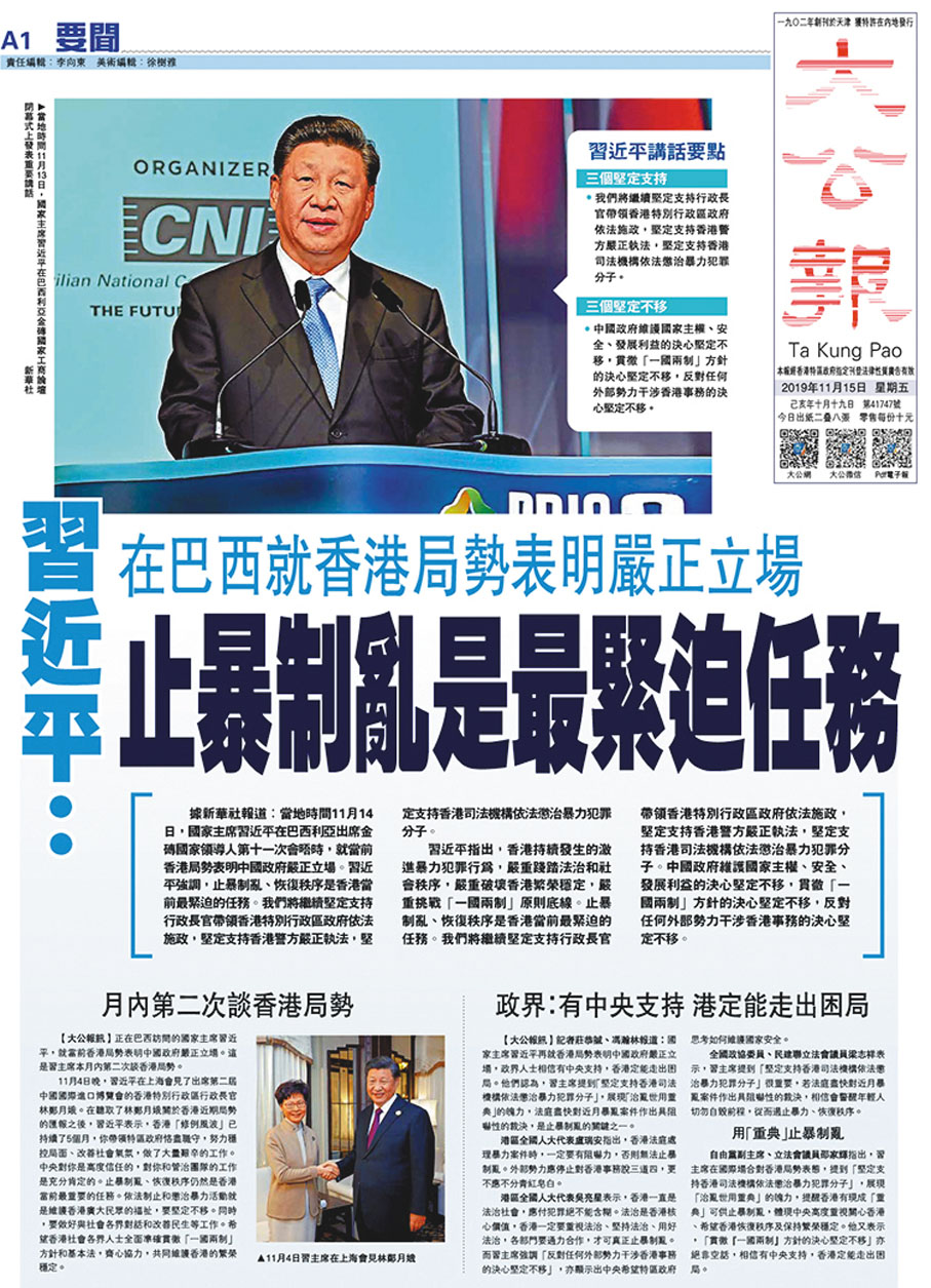 在此期間,《大公報》秉持專業態度,對亂港分子混淆視聽的假新聞予以駁斥,還原事件真相,引起社會強烈共鳴。