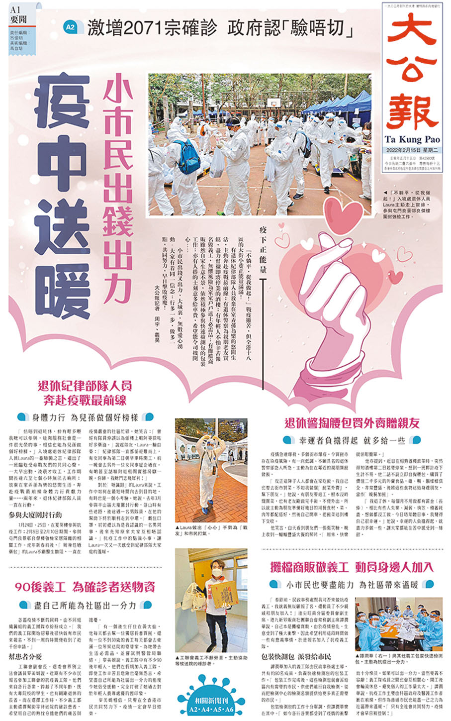 《大公報》堅持以科學為本對抗疫情,旗幟鮮明地支持特區政府的疫苗接種計劃、普及社區檢測;駁斥社會上一些罔顧科學、政治先行的偽科學、假新聞;以多個專題報道基層義工抗疫工作,向社會傳達正能量。