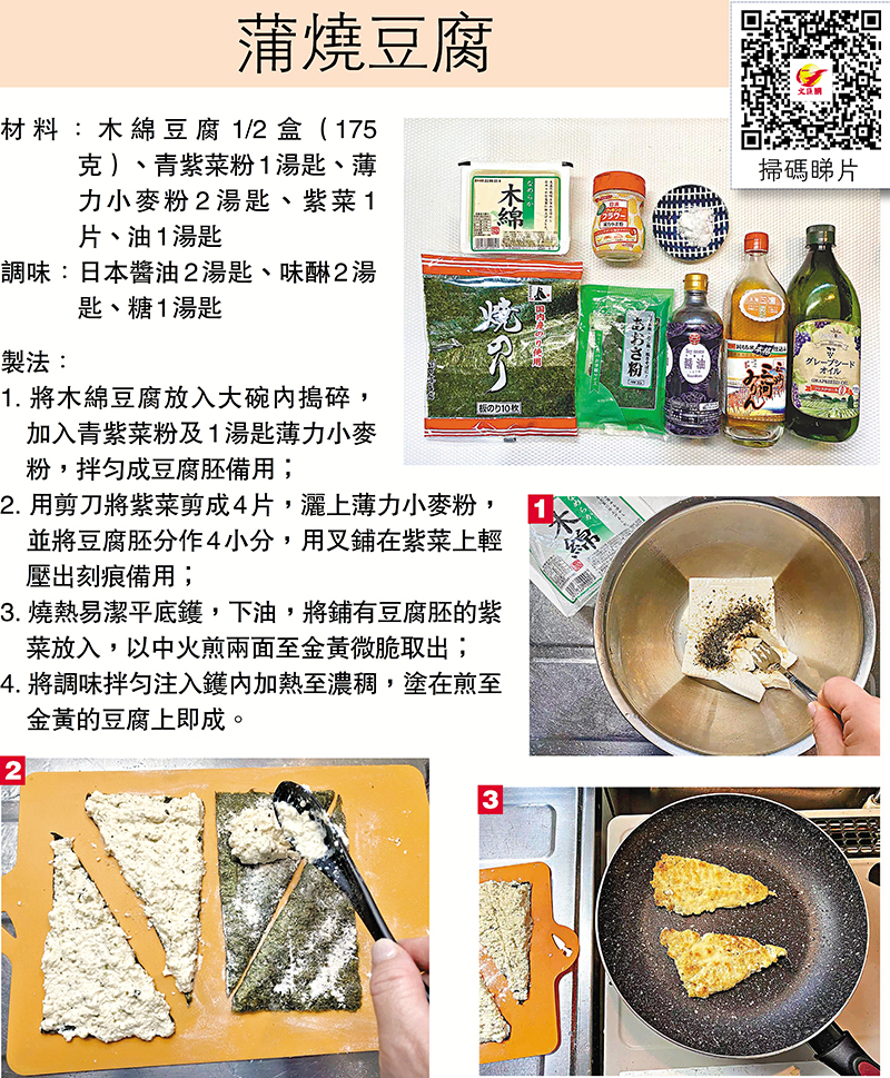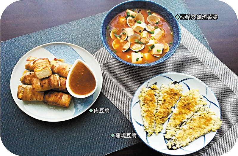 自古以來,豆腐是廣泛被食用的大豆加工食品,製作方法是將煮好的大豆榨汁加入鹽滷或石膏使之凝固而成,過程中掌控水分擠出的分量就成為不同軟硬程度的豆腐,豆腐含有豐富的鈣質,可以說是牛奶最好的替代品,其富含卵磷脂,可維護腦神經,還含有維生素E、維生素B1及B2,當中維生素E有促進血液循環的作用,並且能美肌、紓緩肩膀僵硬及腰痛。加上,豆腐因為熱量少、水分多可以獲得飽腹感,今期就用豆腐為大家做三道養生菜。
