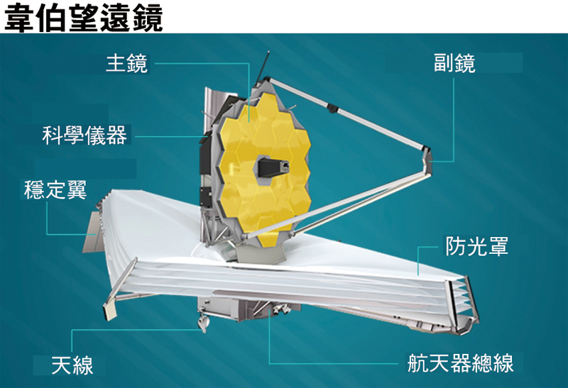 韋伯太空望遠鏡由美國、歐洲和加拿大的太空總署耗資約100億美元(約785億港元)建造,是人類至今製造最昂貴的科學儀器,也是全球至今最大、最強的太空望遠鏡,靈敏度比哈勃望遠鏡強100倍。望遠鏡的金色主鏡由18塊六邊形鏡片組成,總寬度約6.5米,擺動幅度不超過百萬分之十七毫米,能夠保持穩定結構捕獲來自遙遠星系的光。NASA署長尼爾森表示,韋伯望遠鏡的目標是探尋宇宙深處,繼續尋找早在135億年前發出的光,同時研究是否存在適合人類居住的地外行星。