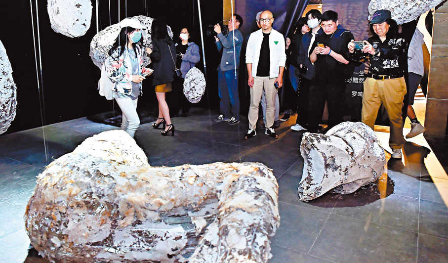 一簇嫩芽「撕裂」炮彈的金屬外殼,露出它們的頭和一張張笑臉,眾多「嫩芽」或從牆壁縫裏鑽出來,或從水泥地上長出來,顯示出強大的生命力,最終形成歌頌生命的「大合唱」。走過一條黑漆漆的長廊,一個身體斑駁的女孩側臥在浩瀚的宇宙裏,靜靜地獨白生命如「花」的故事,她的「小宇宙」空靈而縹緲,無聲地撥動着每一位觀者的心弦。在成都許燎源現代藝術博物館內,一場參展者和觀眾「未曾經驗」的展覽,引起轟動和業內關注。◆文、攝:香港文匯報記者 李兵