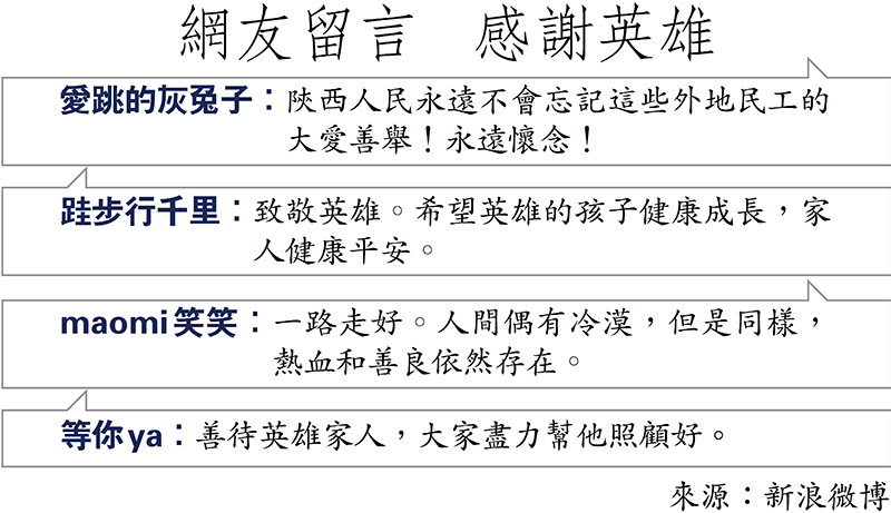 重慶漢陝西打工見義勇為不幸犧牲 西安全城募捐助其家人「讓英雄放心」
