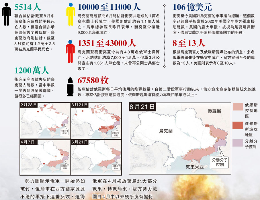 以下是從一些數字,看看過去6個月俄烏衝突所造成的損失和影響。