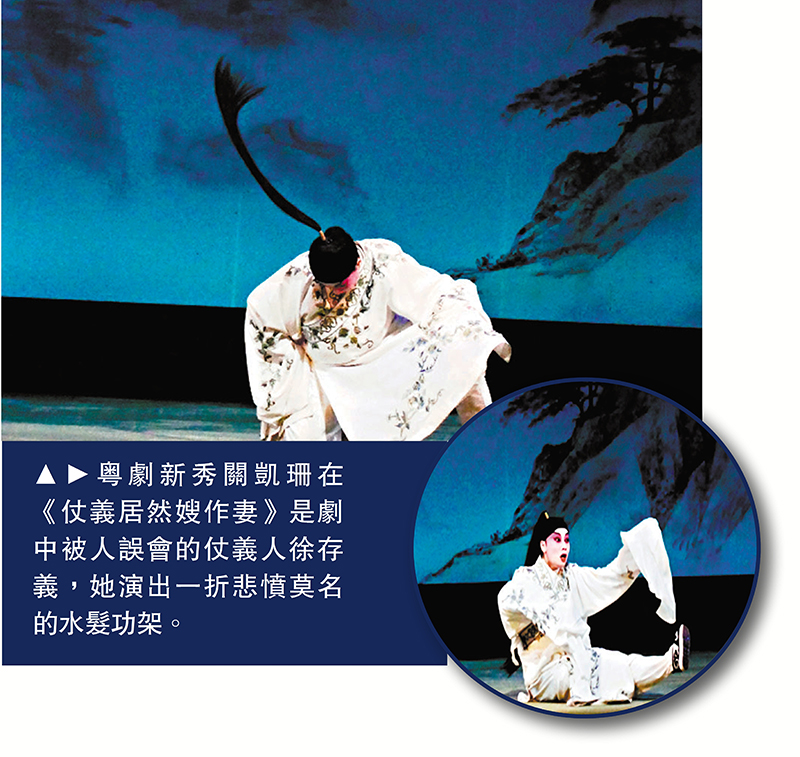 戲曲資料記載「水髮」演藝,記之曰「散髮」,是表現劇中人物的情緒在怒憤、激動狀況下的功架。模式是以頸項為軸,把頂上的一束髮,順時針或逆時針轉動,而人體的配合有多種表達法,有單人又或雙人站、跪、車身在原地表演,也有生旦分演水髮及車身,如《殺忠妻》一折戲,生角演車身,旦角演水髮功架,往往能贏得觀眾熱烈掌聲。