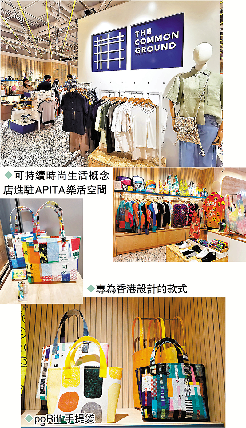 早前,可持續時尚生活概念店The Common Ground進駐樂活空間,品牌搜羅的產品以四大核心為主︰地球、人類、聯繫及一體,支持本地創作,同時亦在世界各地搜羅以公平和減少環境負擔的產品。例如,自家品牌服裝系列以慢時尚為宗旨,設計不會過時的款式,以廢料循環再造、有機綿、天然麻質等可持續發展的紡材製造而成。來自阿根廷的BAUUM主要重用被棄置的降落傘及滑翔傘布料,以人手製造,讓這些材料重生,製造出高質素與功能性兼備且獨一無二的產品,每款產品的布料及顏色視乎當下收集到的降落傘或滑翔傘款式而定。