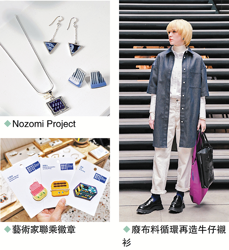 另外,來自大阪的poRiff擅長把看似平平無奇的即棄膠袋升級再用,讓被遺棄的膠袋重生。其工作室與當地社企合作,僱用殘障人士將收集的各式各樣的膠袋,重新拼合、縫製成別樹一格、玩味十足的防水手袋和飾物,每款獨有的圖案、顏色組合都帶有社會共融的理念。而日本社企Nozomi Project則聘請受2011年海嘯影響的石卷市女性為工匠,收集災後散落在小鎮不同角落的陶器碎片,細心製作簡約卻不簡單的飾物。當然,品牌重視本地文化及藝術發展,今次聯乘不同的本地插畫師、設計師、藝術家合作,將他們的作品靈感化成燙章,讓大家輕鬆點綴個人的帆布袋、淨色T恤等。