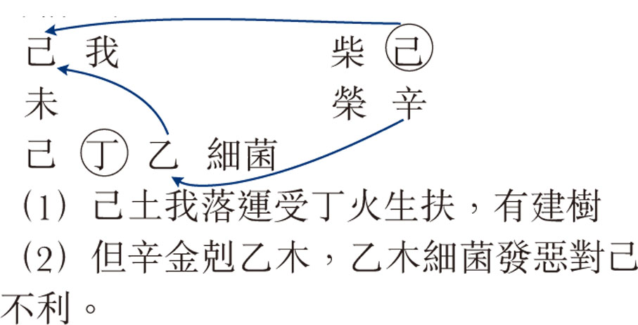 (2)但辛金剋乙木,乙木細菌發惡對己不利。