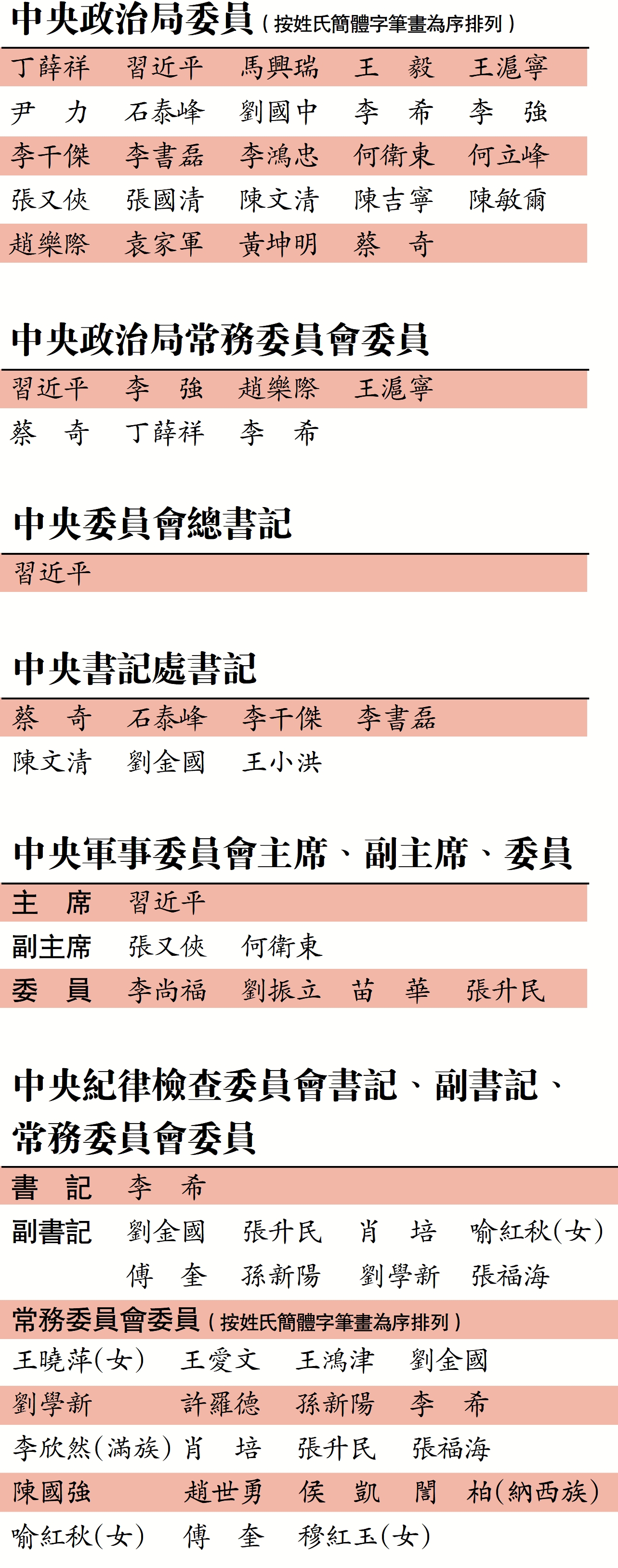中央政治局委員(按姓氏簡體字筆畫為序排列)