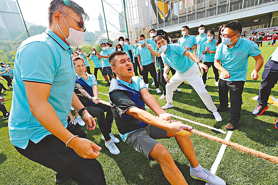 中國石化駐港單位日前在南華會運動場舉辦首屆員工趣味運動會。運動會將傳統趣味遊戲與體育運動相結合,設拔河、摸石過河、袋鼠跳、蛟龍出海等6項團體賽事,飛鏢、推球入位等9個個人比賽項目和趣味套圈項目。當日,員工踴躍參賽,累計超過1,550人次參與比賽。