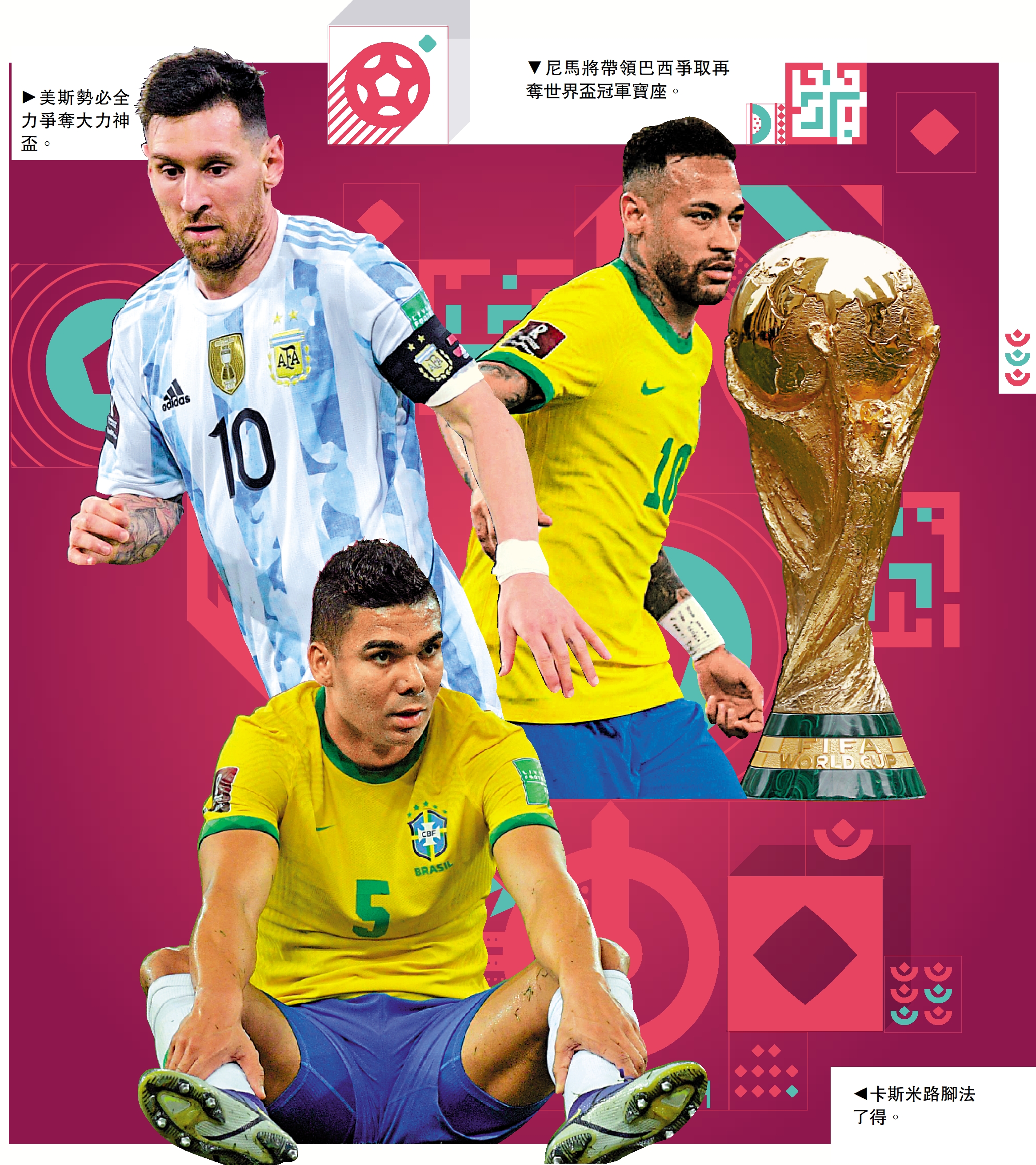 綜觀近4年世界足壇的發展、各支球隊的人員配置和戰術打法,以及近期各支國家隊在熱身賽的表現,南美雙雄巴西和阿根廷是本屆世界盃的奪冠大熱門。