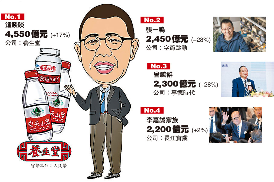 鍾睒睒蟬聯中國首富 身家逆市增650億 李嘉誠進身四大首富