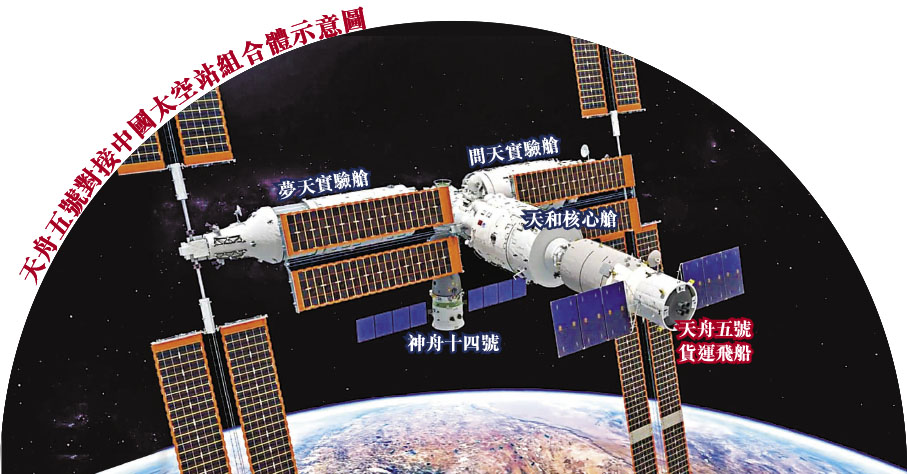 香港文匯報訊(記者 劉凝哲 北京報道)12日10時03分,搭載天舟五號貨運飛船的長征七號遙六運載火箭,在海南文昌航天發射場準時點火發射,進入預定軌道。12時10分,天舟五號採取自主快速交會對接模式,成功對接於太空站天和核心艙後向端口,中國航天員首次在太空站迎接貨運飛船來訪。天舟五號與太空站的交會對接,僅用了2小時,不僅太空「快遞」變「閃送」,更創下世界最快交會對接的新紀錄。這是中國太空站「T」字基本結構在軌組裝完成後的首次發射,對提升太空站任務應急物資補給能力具有重要意義。