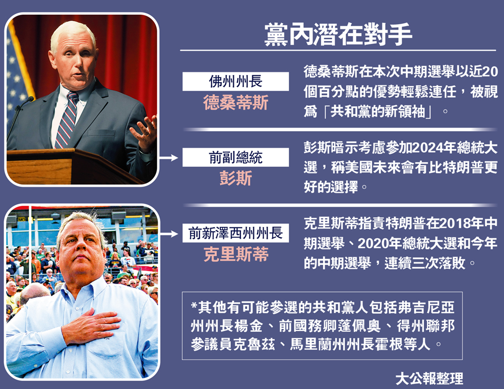 *其他有可能參選的共和黨人包括弗吉尼亞州州長楊金、前國務卿蓬佩奧、得州聯邦參議員克魯茲、馬里蘭州州長霍根等人。