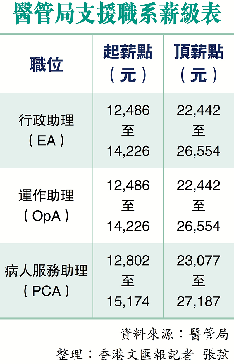 工聯會立法會議員梁子穎表示,目前前線支援人員的起薪點與文職人員無差異,均為1.2萬元,而為病人提供護理服務的病人服務助理,月薪亦只多400元,工作量極大但待遇不匹配,難以吸引更多人才投身醫護前線。