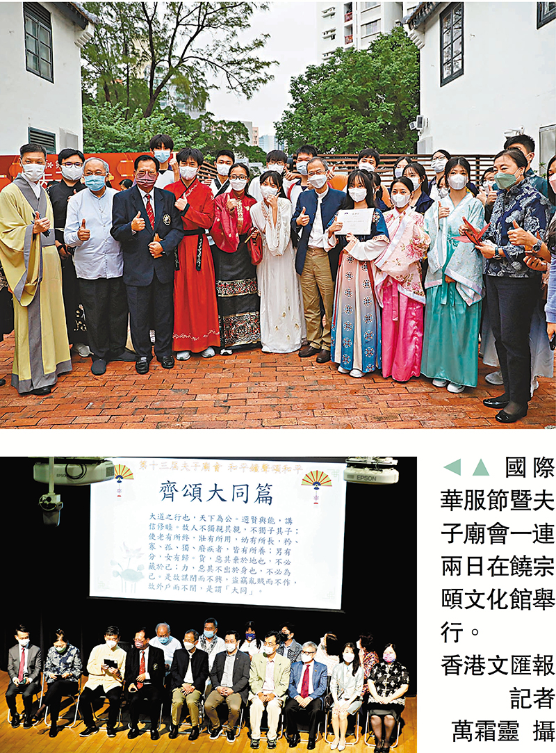 香港文匯報訊(記者 子京)由夫子會主辦、華人廟宇委員會冠名贊助的第十一屆國際華服節暨第十三屆夫子廟會,於昨日、今日一連兩日在饒宗頤文化館舉行。作為香港年度大型文化活動,本屆有超過30個包括各大專院校、中小學、幼稚園、社區及文化社團等團體參演和製作攤位,設多個傳統表演如中國國粹變臉、民族舞、蘇州鼓、太極,還有精彩熱鬧的華服巡遊、華服體驗和攤位遊戲等特色節目,務求在嘉年華式的歡樂氣氛中,促進大眾認識華夏服飾及華服蘊含的文化與價值。