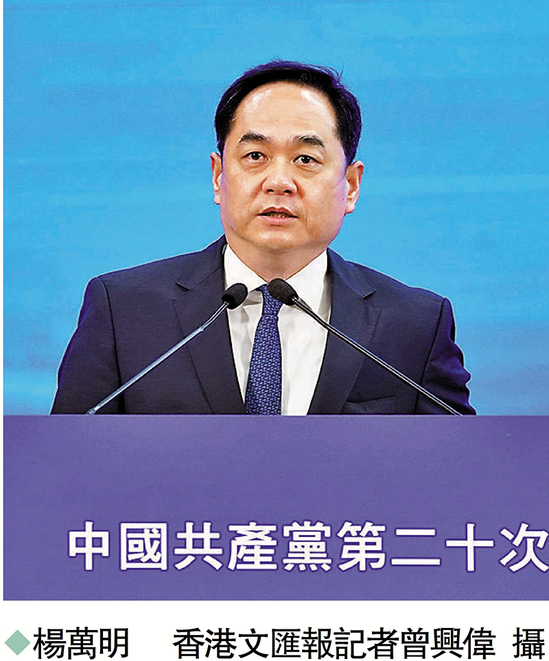 香港文匯報訊(記者 藍松山)國務院港澳事務辦公室副主任楊萬明昨日在宣講會上致辭時指出,許多人表示,學習二十大精神的突出感受,是三個「更加確定」,包括更確定中華民族偉大復興,更確定「一國兩制」行穩致遠,以及更確定香港發展更加輝煌。