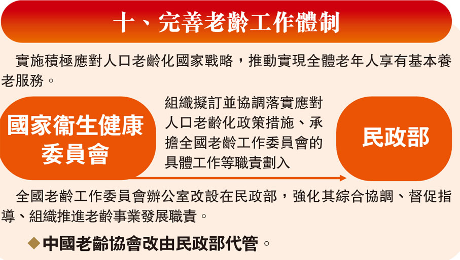 全國老齡工作委員會辦公室改設在民政部,強化其綜合協調、督促指導、組織推進老齡事業發展職責。